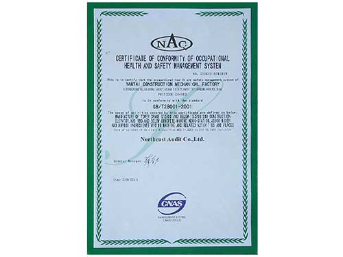 職業(yè)健康安全管理體系認證證書