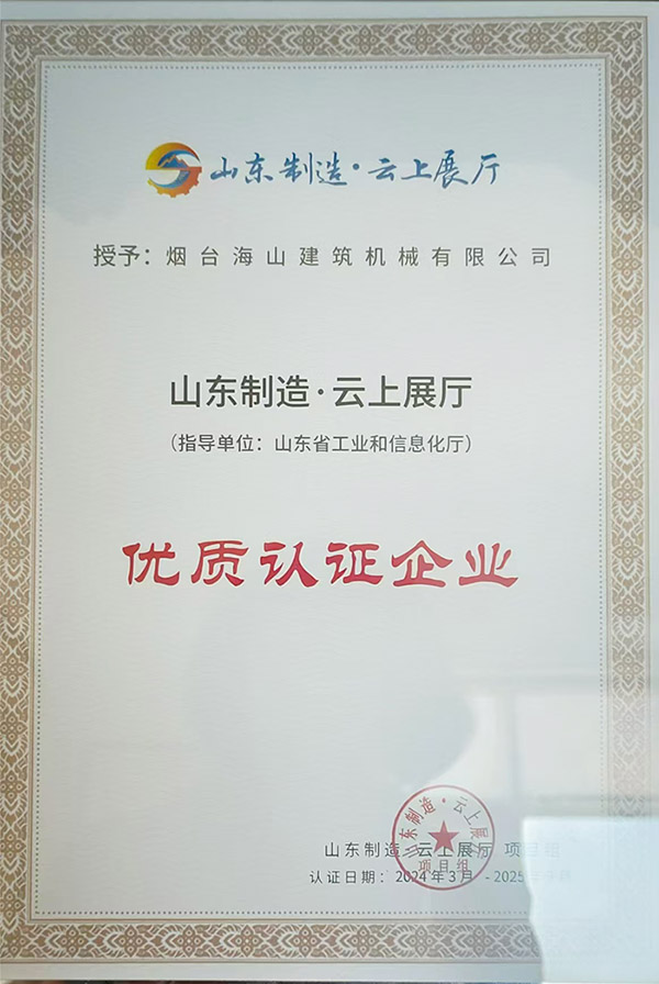 2024年獲得山東制造.云上展廳 優(yōu)質(zhì)認證企業(yè)